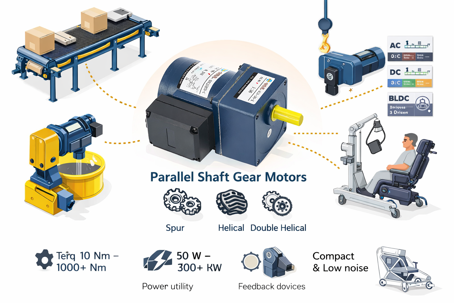 تمتد فوائد الأداء إلى ما هو أبعد من الاستقرار الميكانيكي. توفر تكوينات العمود المتوازي بشكل عام كفاءة نقل أعلى مقارنة بتصميمات التروس ذات الزاوية اليمنى. صغيرة الحجم وخفيفة الوزن، وتتناسب بشكل جيد مع الآلات ذات المساحة المحدودة. تم تجهيز بعض الطرازات بمبيتات محكمة الغلق، مناسبة للبيئات قليلة الغبار أو الرطوبة، مما يضمن الموثوقية في الظروف الصعبة. بالإضافة إلى ذلك، يمكن إقران المحركات بمحركات تيار متردد، أو تيار مستمر، أو محركات تيار مستمر بدون فرش (BLDC)، ودمجها مع أجهزة ردود الفعل السريعة أو أجهزة التشفير لتمكين التحكم في الحلقة المغلقة.